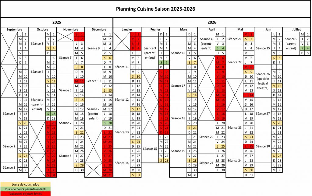 - Atelier parent-enfant (5 séances, chaque samedi veille de vacances scolaires)