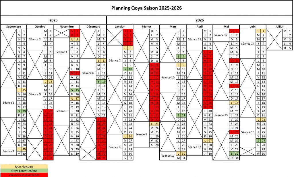- Le samedi de 10h00 à 11h15 : Qoya parent-enfant