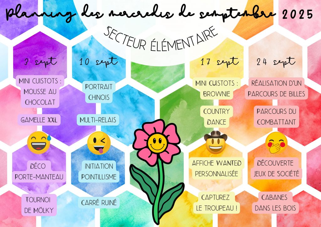 RAPPEL : Les enfants de la commune de St Pierre la Palud sont prioritaires quant aux inscriptions en centre de loisirs. Les enfants inscrits uniquement sur les journées de sorties extérieures ne sont pas prioritaires. Ce secteur rassemble les enfants du CP jusqu’au CM1 inclus.